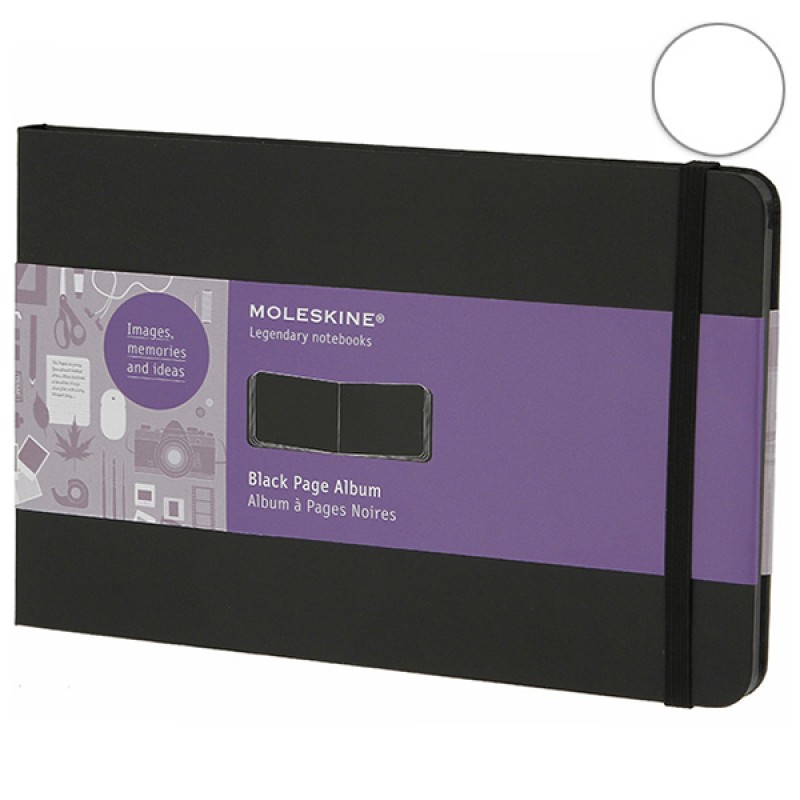 Необычный альбом Moleskine с черными листами в твердой обложке. Имеется фиксирующая резинка и внутренний кармашек.
