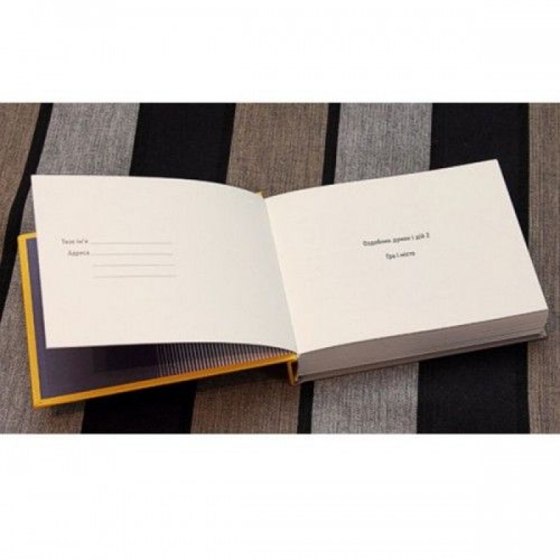 В издание вошли цитаты и иллюстрации: Акцидентный шрифт Алевтины Кахидзе «Людина — зоряне небо, людина — всесвіт», Методика интегрального воспитания, справочник городских игр и др. Авторы: Алексей Салманов, Маша Макаренкова, Мария Гончар, Михаель Лайтман, Ирина Якович, Илля Винокур, Андрей Девятов, Мирон Цовнир, Йоко Тавада, Алевтина Кахидзе, Артем Крепкий, Галя Шиян, Василь Костенко, Ирина Озаринська, Йохан Хьойзинга, Регина Спектор, Андрей Кобяков, Ромео Кастелуччи, Сидни Люмст, Франсуа Трюффо, Питер Брук, Константин Станиславський, Ежи Гротовськи, Всеволод Мейерхольд, Антонен Арто, Виктор Кузьменко. Размер: 16 х 11,5 х 3,2 см Кол-во страниц: 336 Обложка: Твердая Цвет обложки: Ярко-желтый Цвет страниц: Белый Разлиновка: Чистые листы На форзаце — место для имени, телефона и адреса владельца. Прочный переплет.