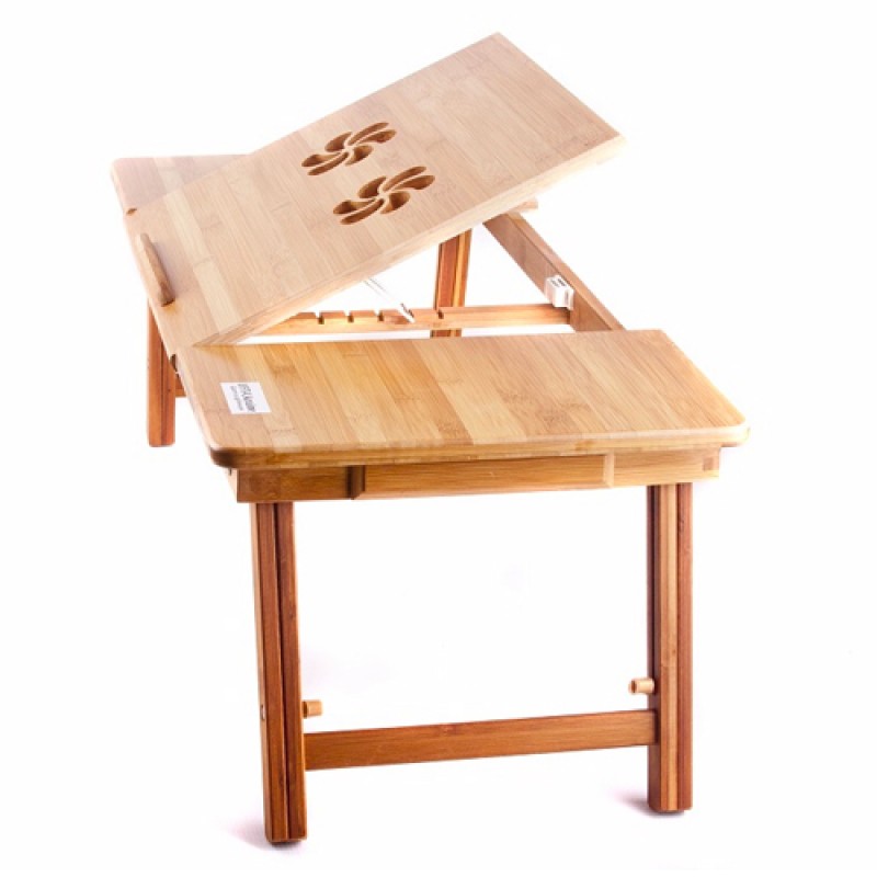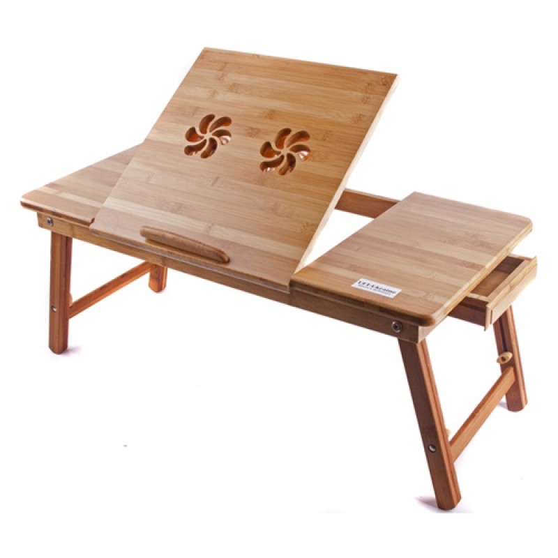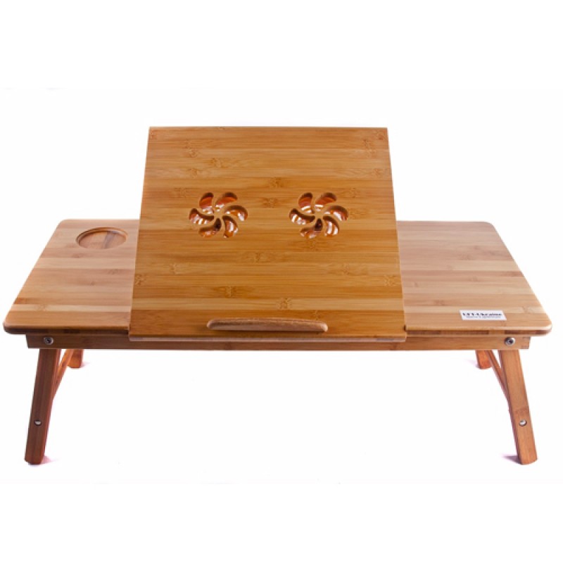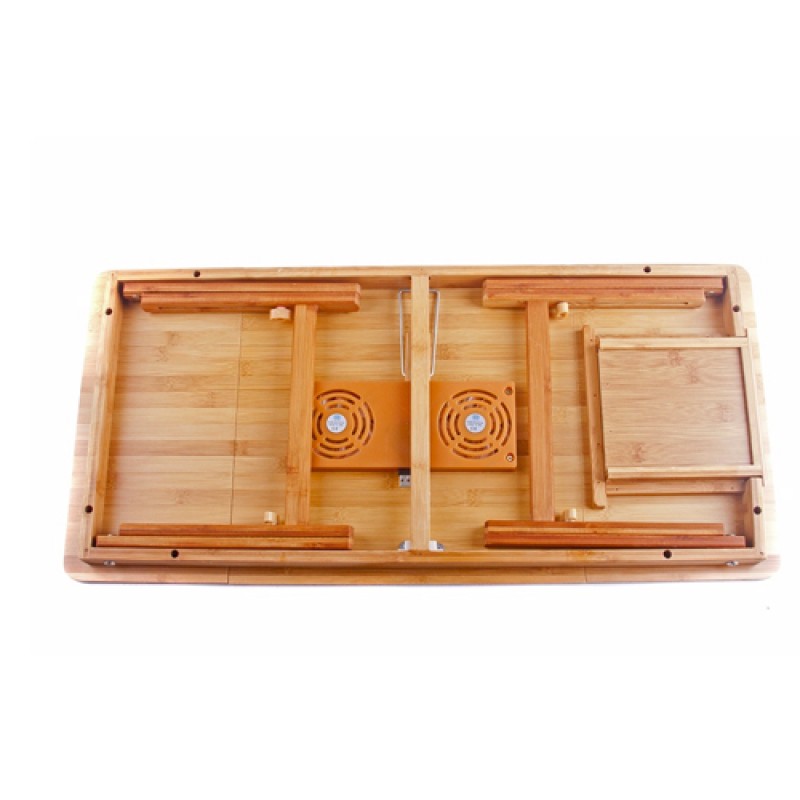 Легкий, и в тоже время, прочный, эргономичный и долговечный столик из бамбука - отличный подарок человеку, который работает за компьютером. Удобный столик для компьютера имеет подставку под мышку с обеих сторон от рабочей поверхности, небольшой ящик для наушников, блокнотов, гаджетов; подставку для чашки. Для столика подходят ноутбуки 14' 15' 16' 17' 18' 19'. Имеет активное охлаждение, два вентилятора.