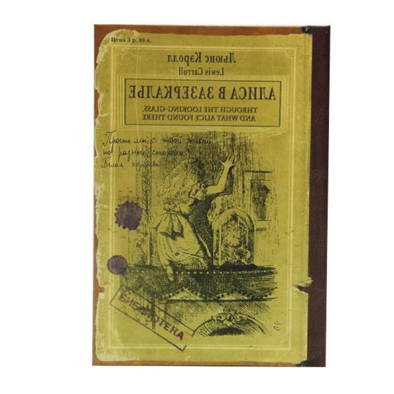 Записная книжка для всех любителей произведения Льюис Кэролл "Алиса в зазеркалье". Интересно в записной книжке, то, что она имеет внутри зеркальце. То есть в ней можно делать различные записи и прихрашиватся, гладя на свое отражение.