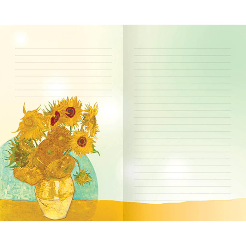 В блокноте много иллюстраций мастеров этого времени и афоризмов, призванных поддержать творческое настроения хозяина блокнота. Также на форзацах можно найти специальный QR-код, по которому можно перейти на сайт с цитатой дня.
