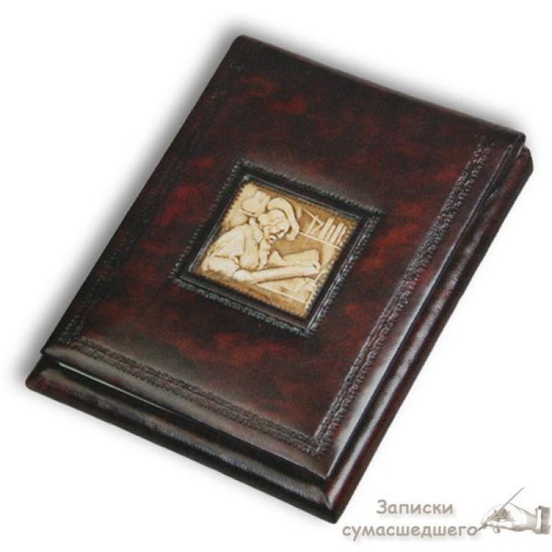 Блокнот "Леонардо" изготовлен флорентийскими мастерами, которые славятся художественным тиснением кожи. Работают мастера исключительно в античном и классических стилях. Сюжеты на своих творениях мастера использовали библейские сюжеты, а также сюжеты на темы картин Боттичелли, Микеланджело и Леонардо да Винчи.