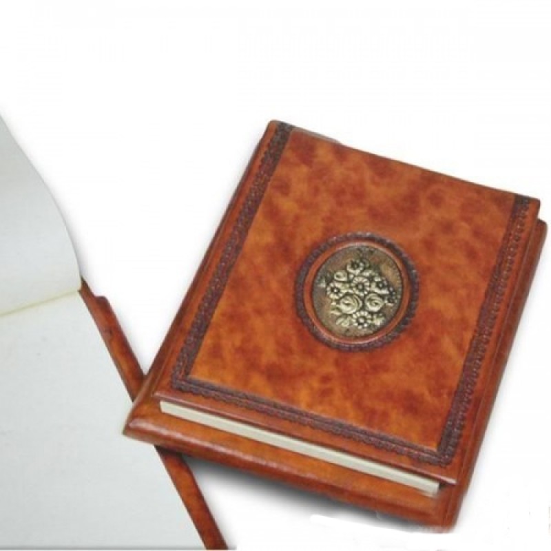Блокнот ручной работы, изготовлен из натуральной кожи. На обложке изображен букет цветов в овальной рамке. (съемный внутренний блок).