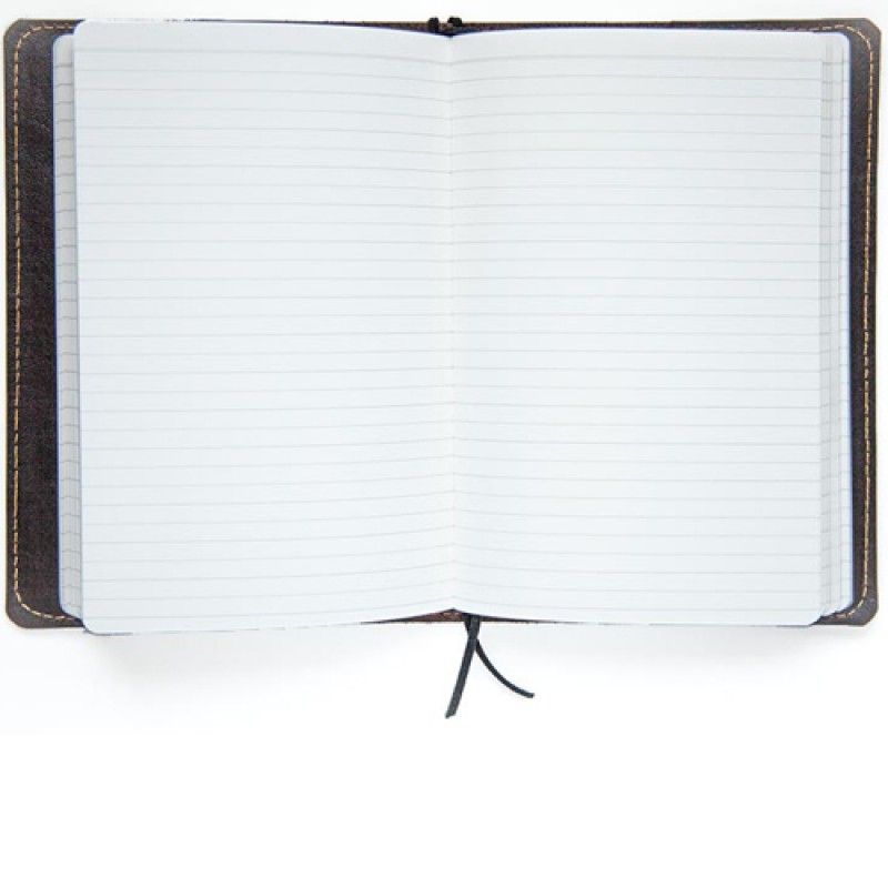 Цвет блокнота можна выбрать повкусу - темно-синий либо коричневый. Блокнот фиксируется при помощи резинки, цвет которой в тон цвета обложки. Также записная книжка имеет двойную закладку для удобного подьзования. Внутренний блок записной книжки - шведская бумаги кремового цвета.