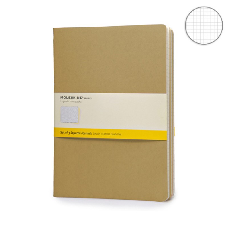 Блокнот Moleskine Cahier (3 шт) с обложкой из сверхпрочного картона бежевого цвета. Страницы в клетку, блокнот закрывается на резинку, имеется стандартный внутренний кармашек.