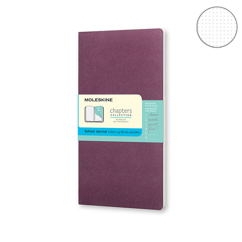 Новый формат записных книжек для ежедневного использования Chapters, необычный для коллекции Moleskine. Эти записные книжки разделены на две секции, предлагая подходящую структуру для записей современному разносторонне занятому человеку, которому приходится держать в уме сразу несколько проектов. Благодаря оригинальной текстурированной обложке, приглушенной цветовой гамме и прошитому переплету эти записные книжки приятно носить с собой, куда бы вы ни направлялись.
