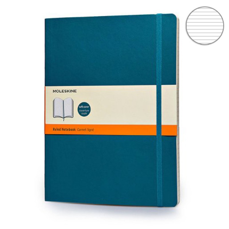 Большой блокнот Moleskine Classic в мягкой обложке цвета аквамарин. Имеется фиксирующая резинка и внутренний карман.