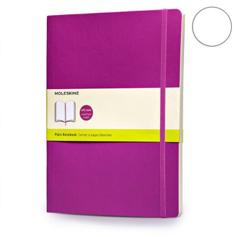 Большой блокнот Moleskine Classic в мягкой обложке розового цвета. Имеется фиксирующая резинка, также карман внутри.