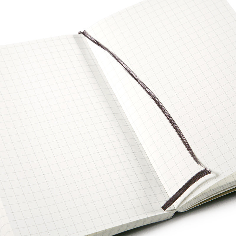 Сохранилось и внутреннее наполнение: закладка, кремовая бумага, конверт для мелочей на форзаце, застёжка - резинка. Есть также титульный лист для данных владельца. Но к стандартным разметкам (чистый, линия, клетка) добавилась ещё «точка» (dotted).