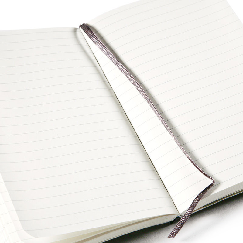 Сохранилось и внутреннее наполнение: закладка, кремовая бумага, конверт для мелочей на форзаце, застёжка - резинка. Есть также титульный лист для данных владельца. Но к стандартным разметкам (чистый, линия, клетка) добавилась ещё «точка» (dotted).