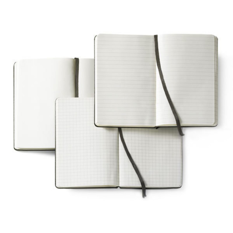 Сохранилось и внутреннее наполнение: закладка, кремовая бумага, конверт для мелочей на форзаце, застёжка - резинка. Есть также титульный лист для данных владельца. Но к стандартным разметкам (чистый, линия, клетка) добавилась ещё «точка» (dotted).