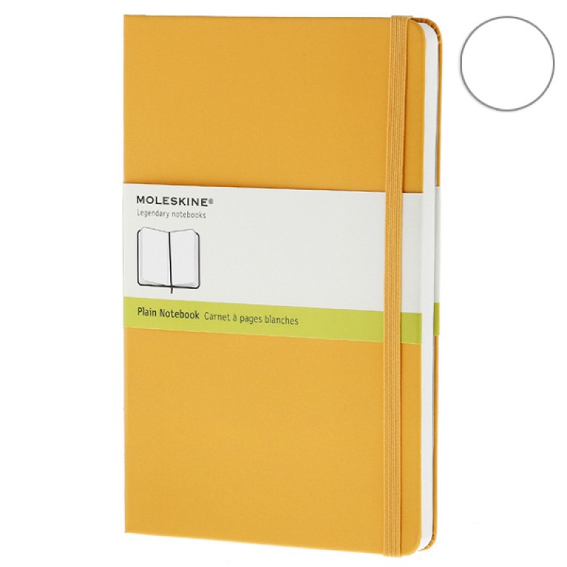 Блокнот Moleskine солнечного желтого цвета среднего размера в твердой обложке. Есть фиксирующая резинка и карман внутри.