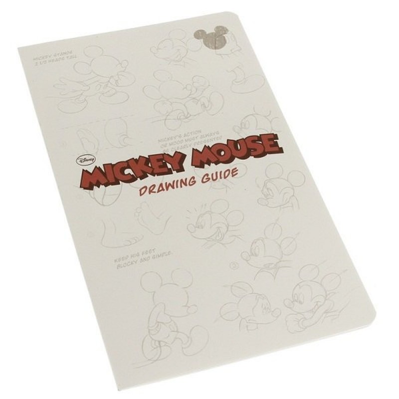 Обложка чёрного цвета из экокожи оформлена блинтовым тиснением с портретом Микки Мауса – самого первого героя Disney. Внутри – форзацы с тем же Микки и его отдельными частями. Всё просто – дизайнеры блокнота задались целью научить Вас рисовать этого персонажа в самых разных позах. Здесь же есть место под запись данных о владельце.