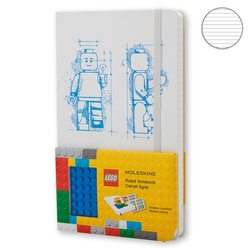 Блокнот Moleskine Lego-14 в твердой обложке белого цвета. Внутри 240 разлинованных листов, фиксирующая эластичная резинка и внутренний карман.