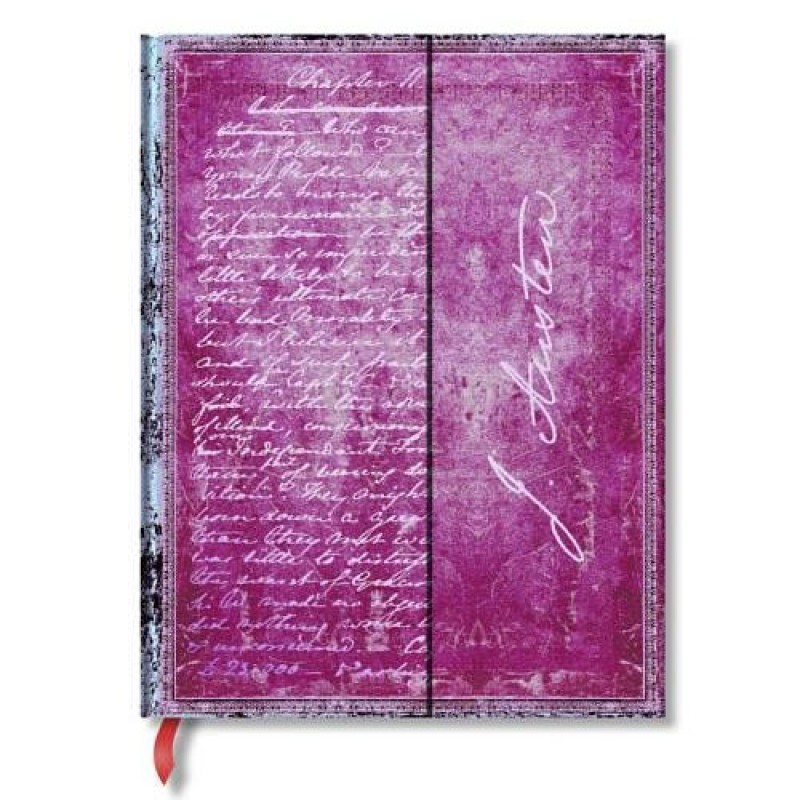 Романтическая фантастика Джейн Остин сделала её известной в качестве одного из самых читаемых писателей в английской литературе. На обложке этого блокнота изображена выдержка из её оригинальной рукописи.
