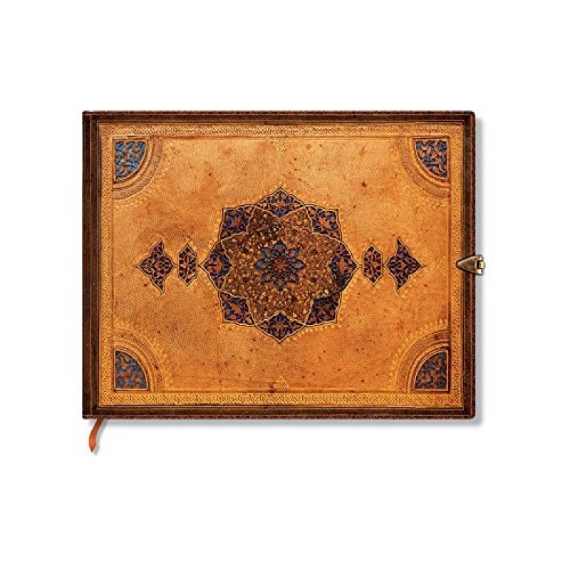 Эпоха династии Сафавидов (XV-XVII вв.) – это золотой век персидского рукоделия, и, в частности, ковроткачества. Количество удивительных орнаментов, которые придумывали древние мастера, не поддается исчислению.Узор, как правило, состоял из сложного затейливого медальона в центре и плотного растительного рисунка основного поля и бордюра. Имелись многочисленные, очень запутанные и точно выполненные геометрические фрагменты, реалистично изображенные птицы и цветы. Интерпретировать эти орнаменты можно по-разному: например, медальон в центре ковра может обозначать всевидящее Божье око или священный цветок лотоса. На обложке блокнота изображена часть классического персидского орнамента данной эпохи.