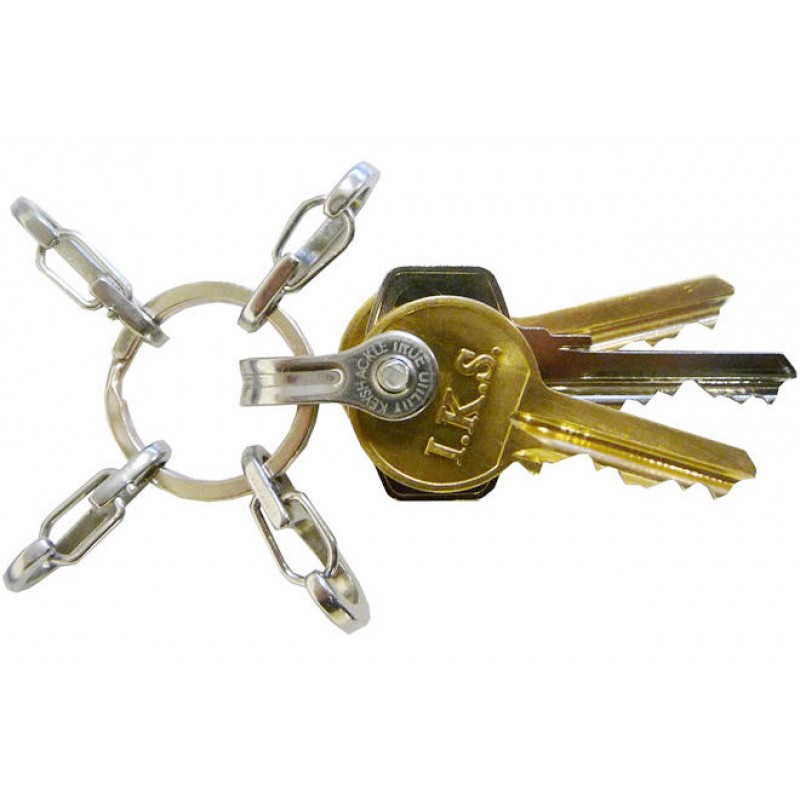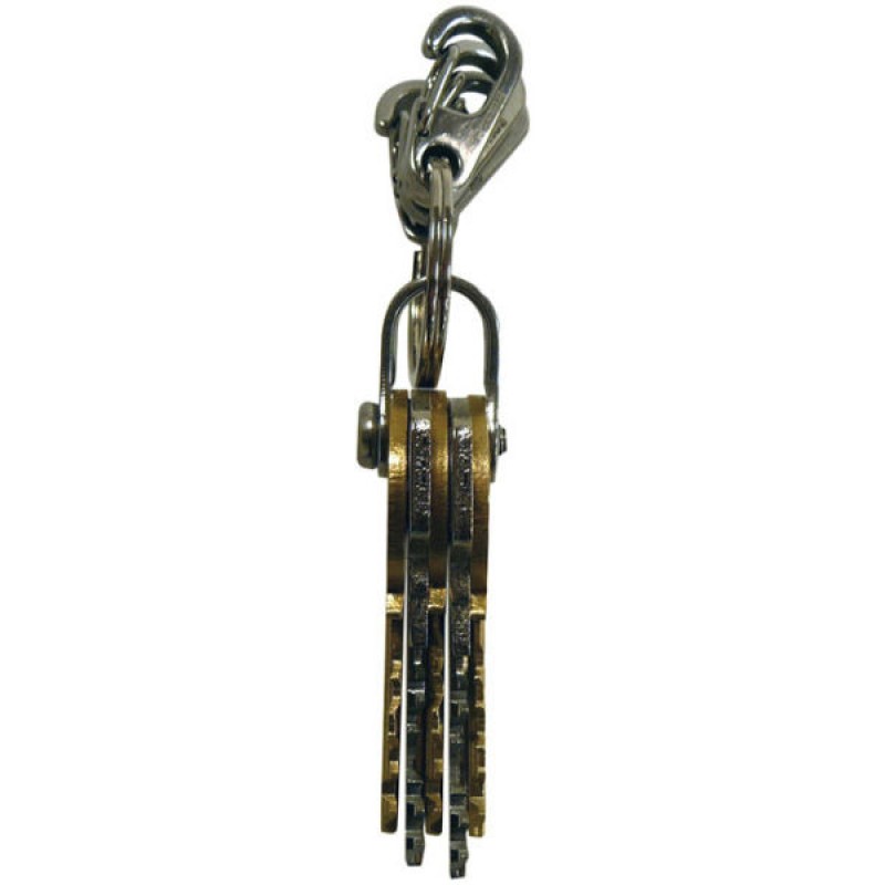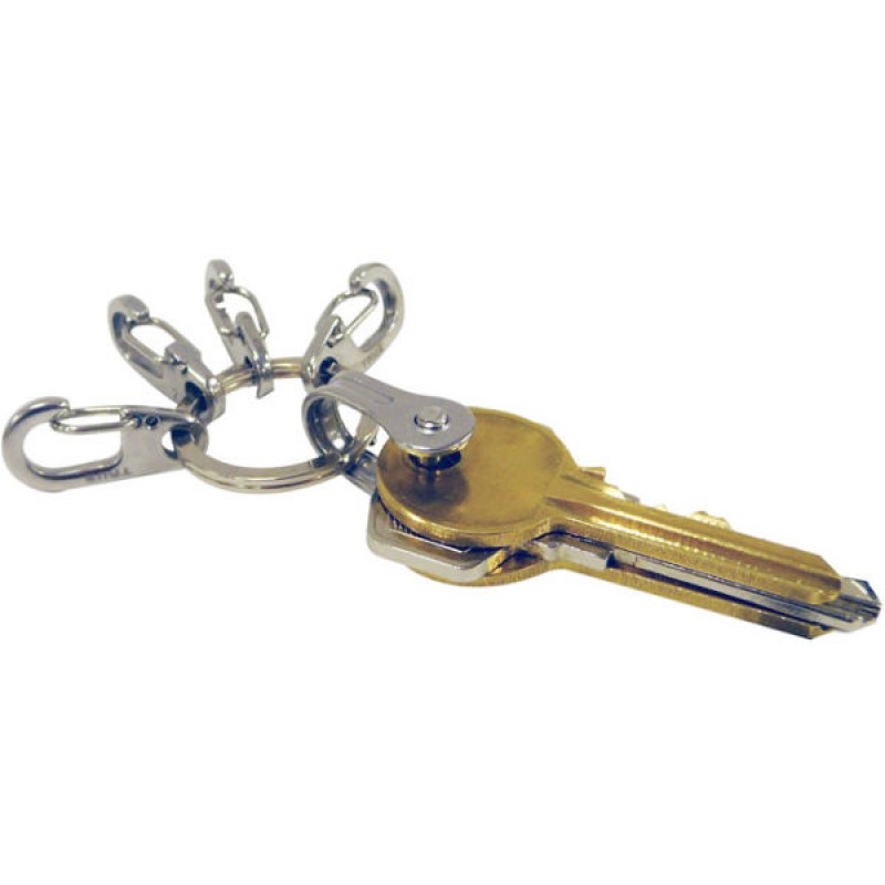 Брелок-ключница для двух связок ключей, с 4-мя карабинами. В скобу из нержавеющей стали помещается до пяти комплектов ключей, которые располагаются совершенно ровно и в нужном порядке. Размеры: 24ммХ10ммХ22мм - кольцо, 26ммХ13ммХ28мм - застежка