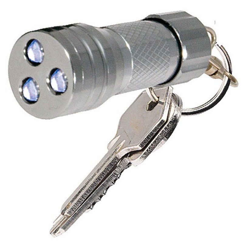 Водонепроницаемый брелок-фонарик с 3-мя светодиодными лампами яркостью 5лм каждая и выходной мощностью 22 Вт, с поворотным механизмом включения. На светодиодные лампочки дается пожизненная гарантия. В комплекте 4 батарейки. Изготовлен из авиационного алюминия с хромовым покрытием. Размеры: 48ммХ19мм