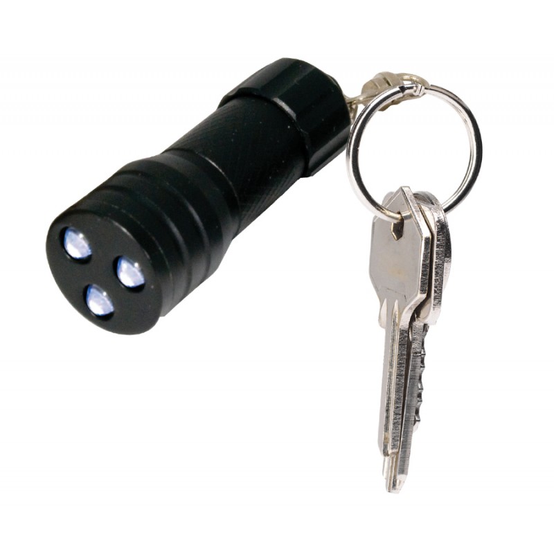 Водонепроницаемый брелок-фонарик с 3-мя светодиодными лампами яркостью 5лм каждая и выходной мощностью 22 Вт, с поворотным механизмом включения. На светодиодные лампочки дается пожизненная гарантия. В комплекте 4 батарейки. Изготовлен из авиационного алюминия с хромовым покрытием. Размеры: 48ммХ19мм