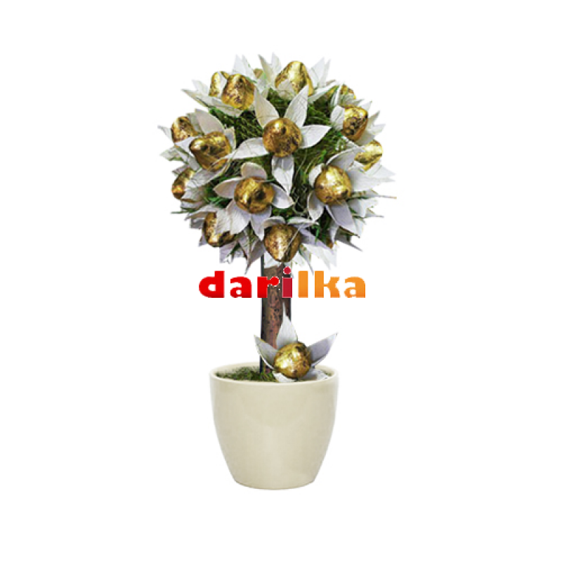 Букет из конфет Дерево удачи - оригинальный подарок, который может простоять намного дольше, нежели обычные букеты.