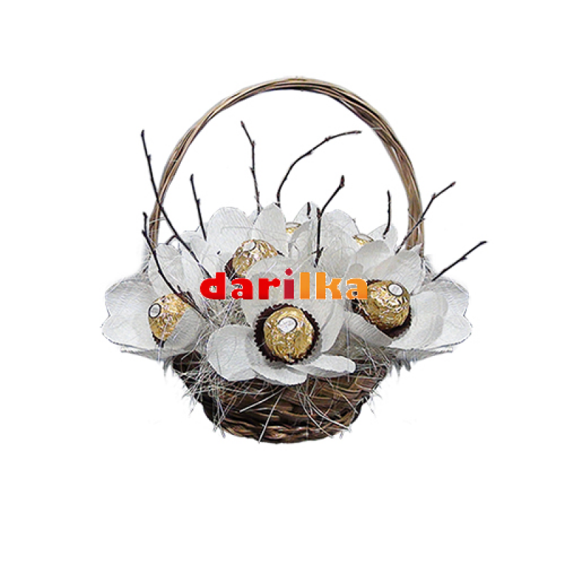 В состав букета входят: конфеты FerreroRocher: 15шт, корзинка, флористический материал.
