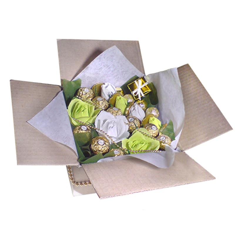| Состав | коробка Raffaello (150грамм )+ 6шт.в цветах (общее количество конфет: 21), новогодний декор. |