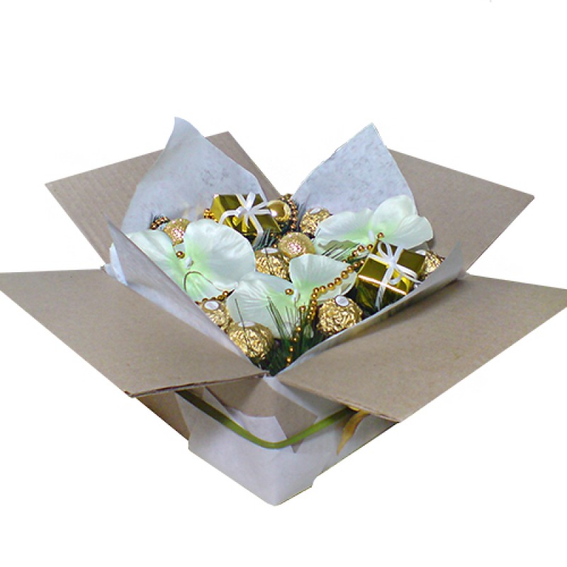 | Состав | FerreroRocher- 15 шт,искусственные орхидеи, новогодний декор. |