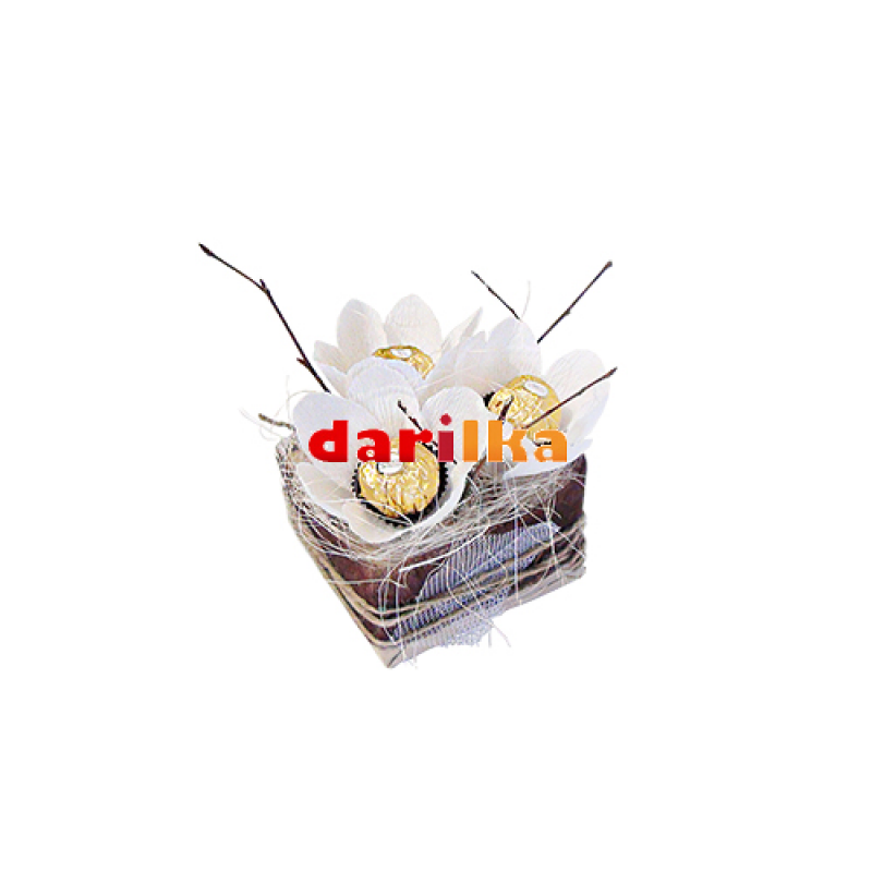 | Состав | конфеты FerreroRocher: 3шт, флористический декор. |