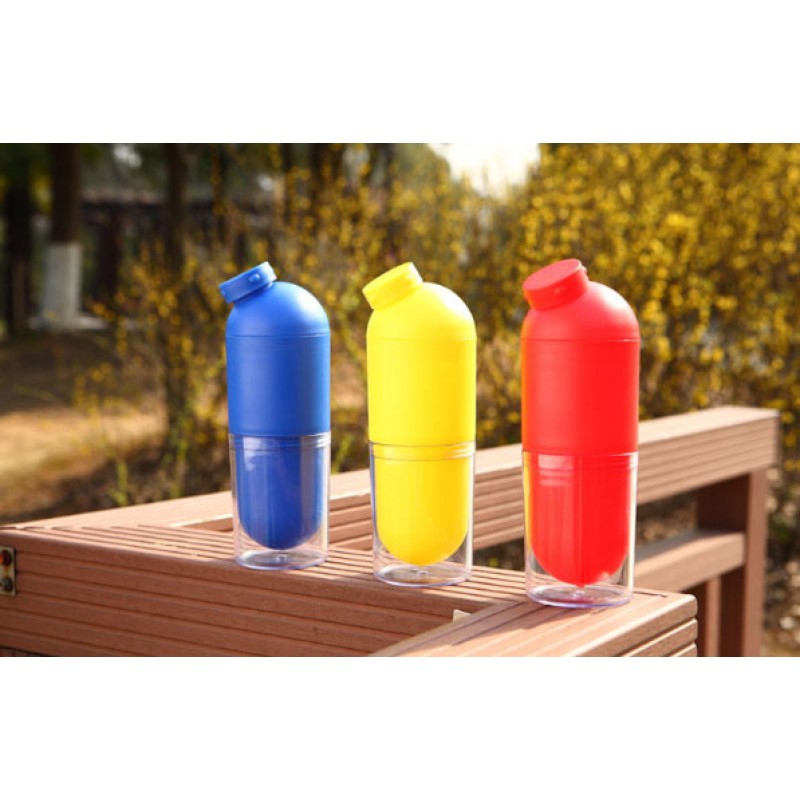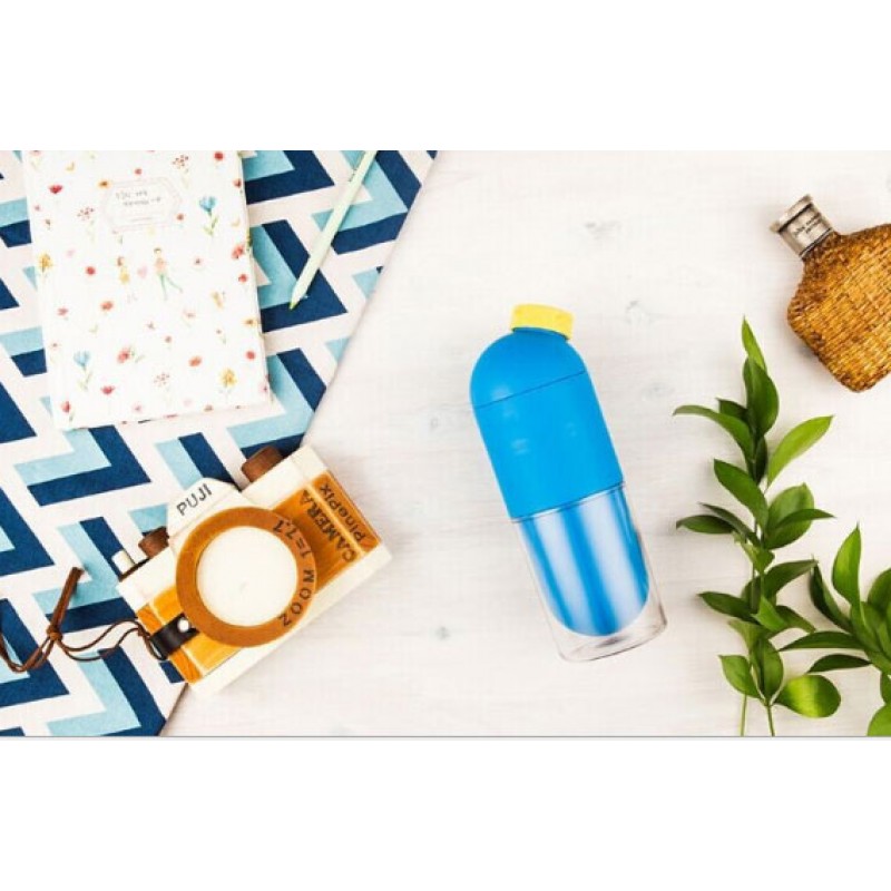 Яркая и красочная бутылочка со стаканом. Такая бутылочка подходит не только для воды, но и для соков, коктейлей, смузи.
