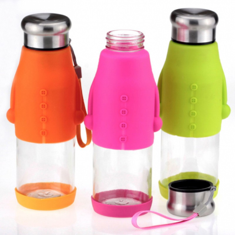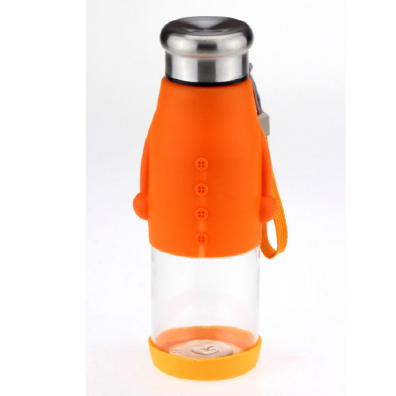 Необычная бутылочка для напитков со съемным чехлом в виде одежды с пуговичками. Данная бутылка вмещает в себя 500 мл. А также она имеет удобную ручку для переноски.