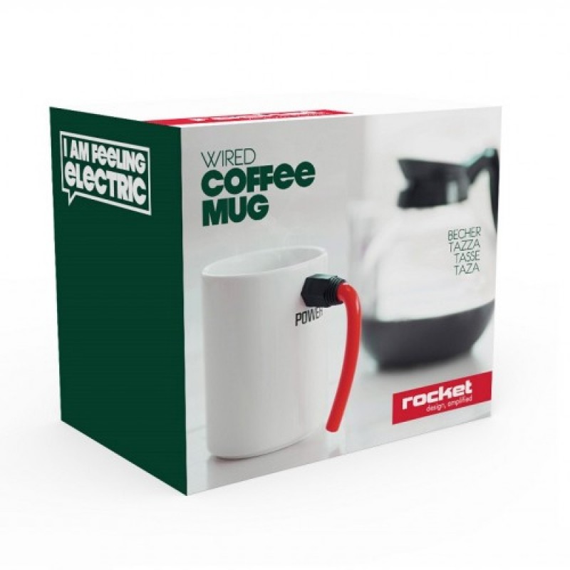 В начале длинного и напряженного трудового дня так хочется дополнительной энергии для деловых свершений... Кружка Wired позволит чувствовать электро-поддержку с самого утра и до позднего вечера! Ручка в форме Power-кабеля не только очень стильная, но и эргономичная - чашку удобно держать в руке. Корпус и ручка чашки выполнены из высококачественного фарфора, а основание "разъема" - из приятного на ощупь силикона. Можно мыть в посудомоечной машине. Объем: 11,5 x 9,5 х 7,5 см. Остерегайтесь дешевых низкокачественных подделок! Производитель: Rocketdesign, Великобритания.