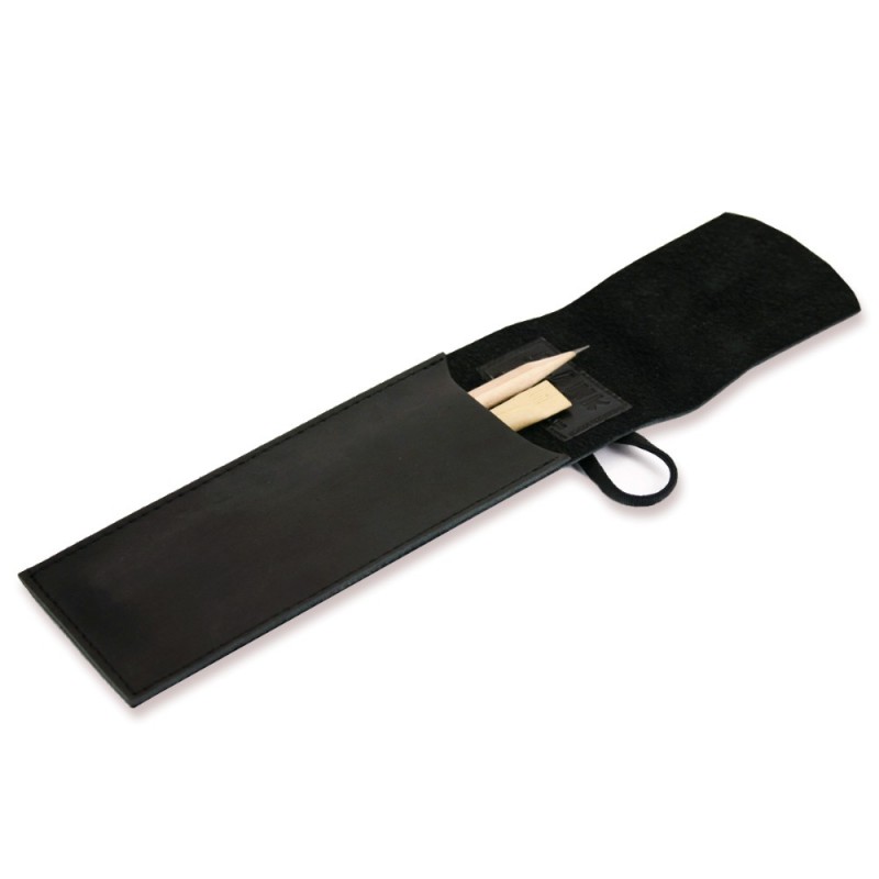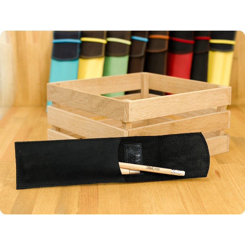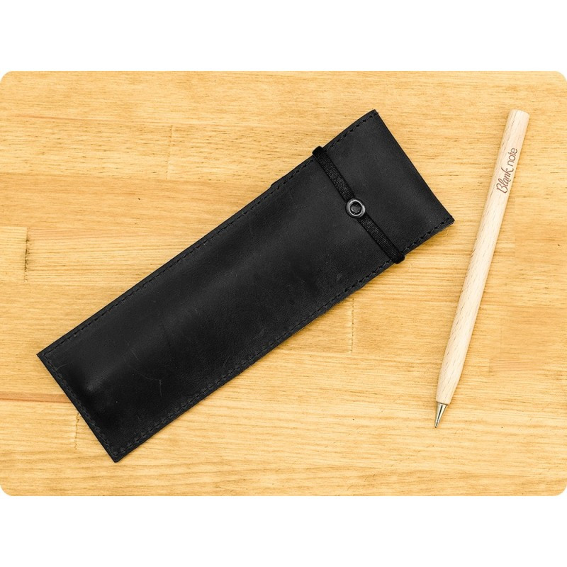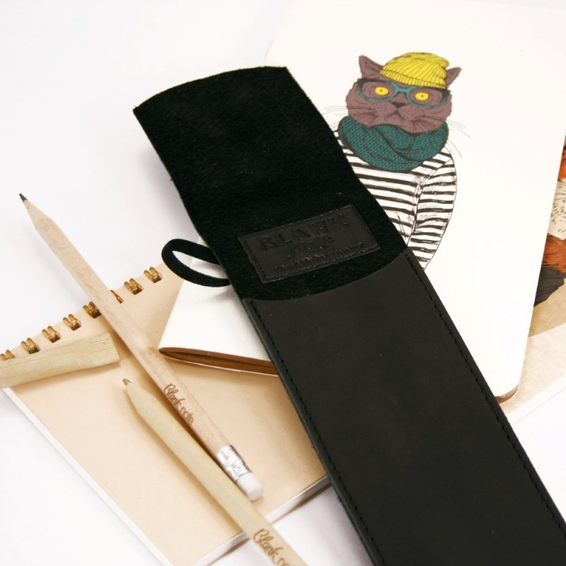 Качественный чехол для ручек - отличный подарок как деловому человеку, так и творческой личности, студенту. Чехол из натуральной кожи, ручной работы. Закрывается чехол с помощью резинки, поэтому ручки и карандажи надежно лежат в нем и не выпадают. В комплект к чехлу идет деревянная эко-ручка и карандаш с логотипом Фабрики BlankNote. Чехол для ручек 1.0 Графит - стильный подарок для работы и творчества.
