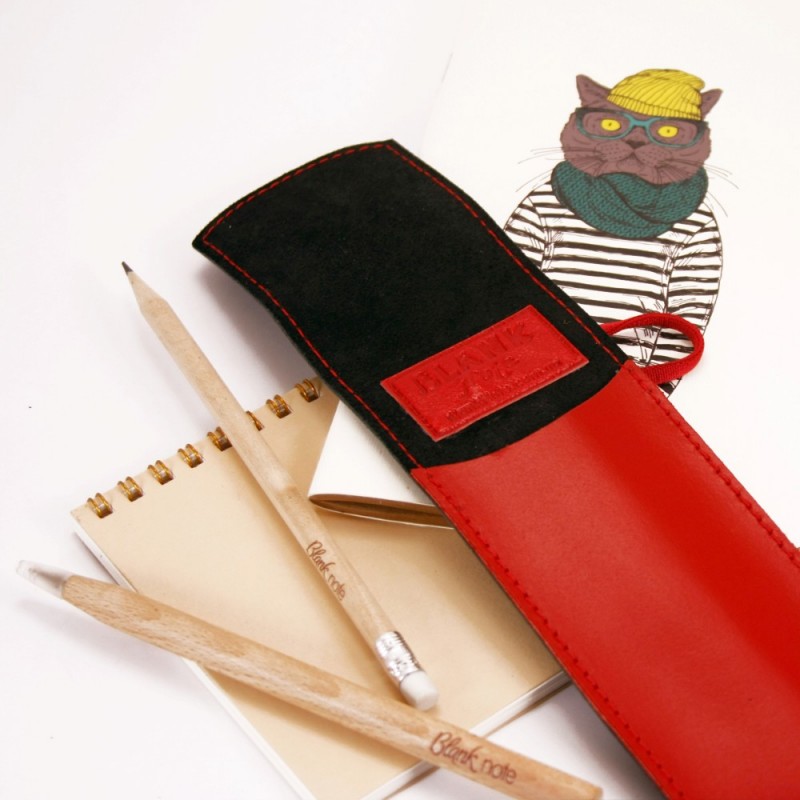 Качественный чехол для ручек - отличный подарок как деловому человеку, так и творческой личности, студенту. Чехол из натуральной кожи, ручной работы. Закрывается чехол с помощью резинки, поэтому ручки и карандажи надежно лежат в нем и не выпадают. В комплект к чехлу идет деревянная эко-ручка и карандаш с логотипом Фабрики BlankNote. Чехол для ручек 1.0 Графит-клубника - стильный подарок для работы и творчества.