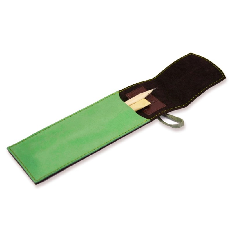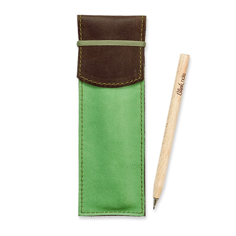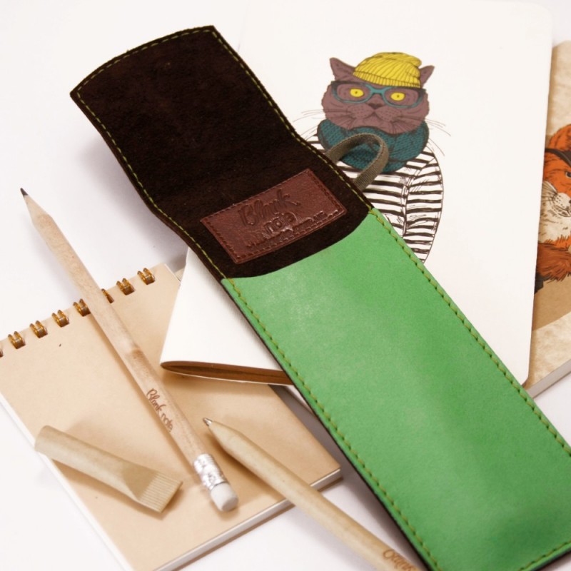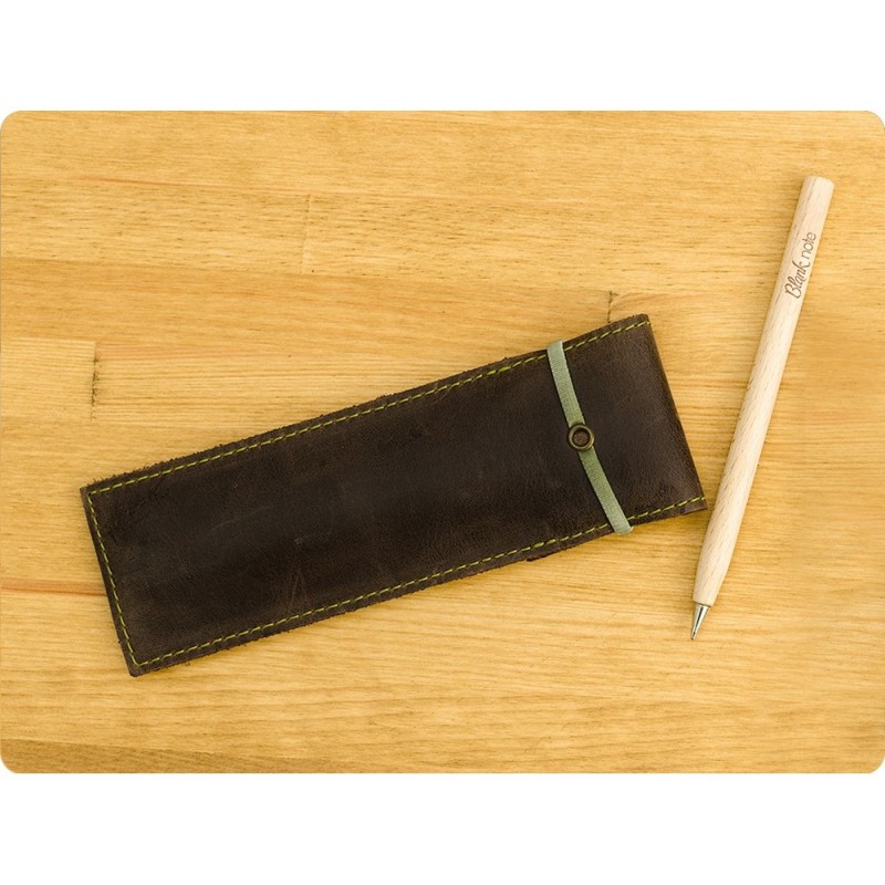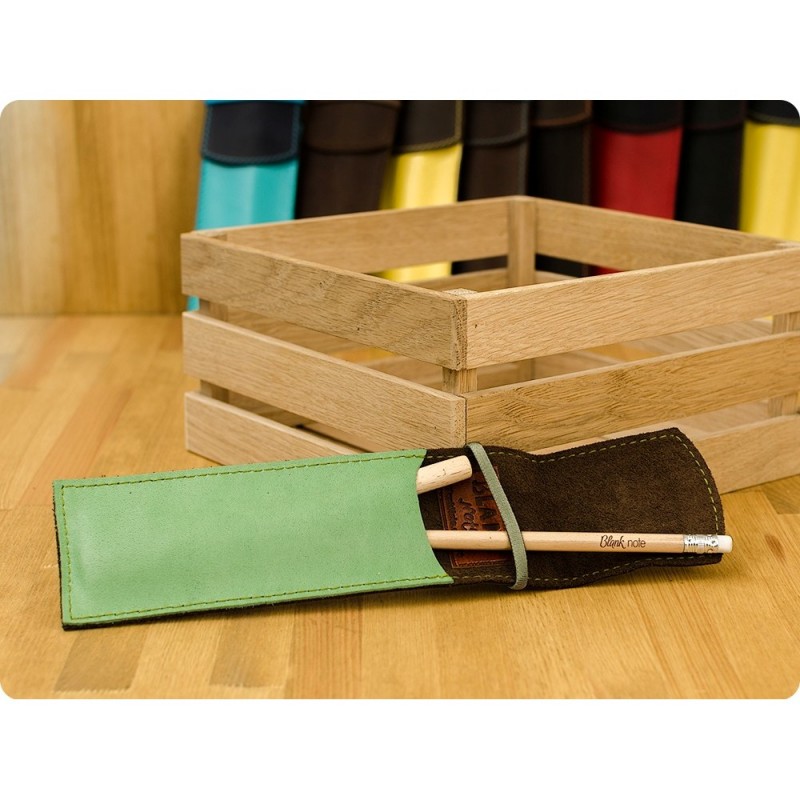 Качественный чехол для ручек - отличный подарок как деловому человеку, так и творческой личности, студенту. Чехол из натуральной кожи, ручной работы. Закрывается чехол с помощью резинки, поэтому ручки и карандажи надежно лежат в нем и не выпадают. В комплект к чехлу идет деревянная эко-ручка и карандаш с логотипом Фабрики BlankNote. Чехол для ручек 1.0 Орех-фисташка - стильный подарок для работы и творчества.