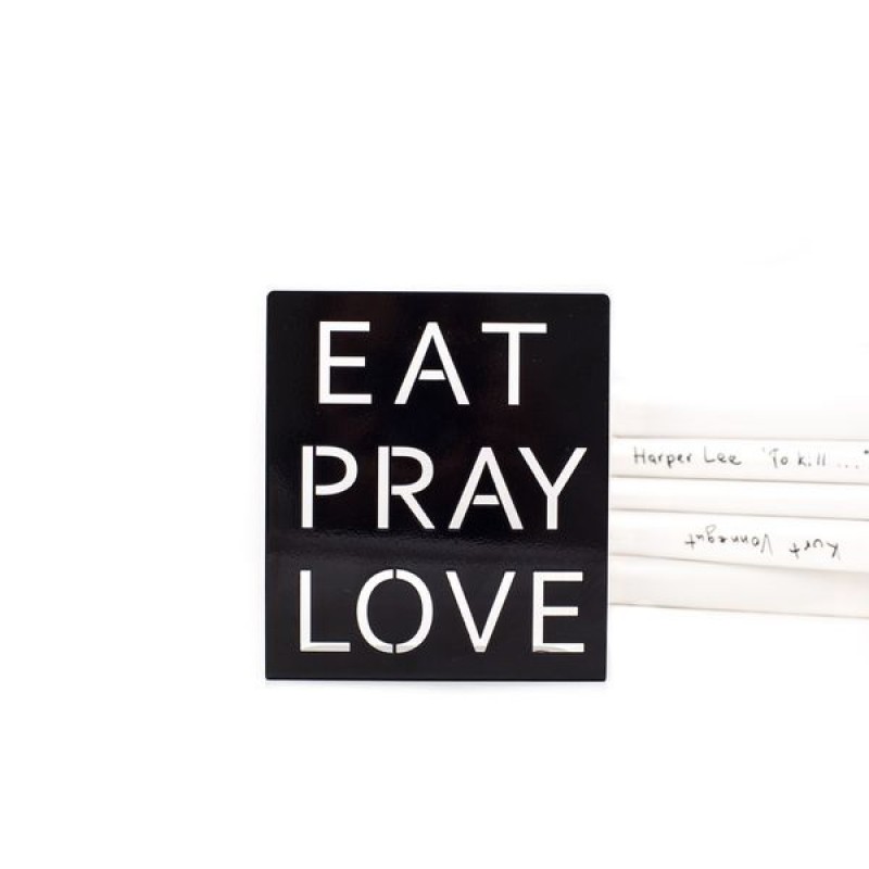 Книжный упор Eat, Pray, Love для людей, которые ценят комфорт, умеют наслаждаться вкусной едой и отличной компанией, любят свою жизнь и дышат полной грудью. Прекрасный подарок светлым людям.