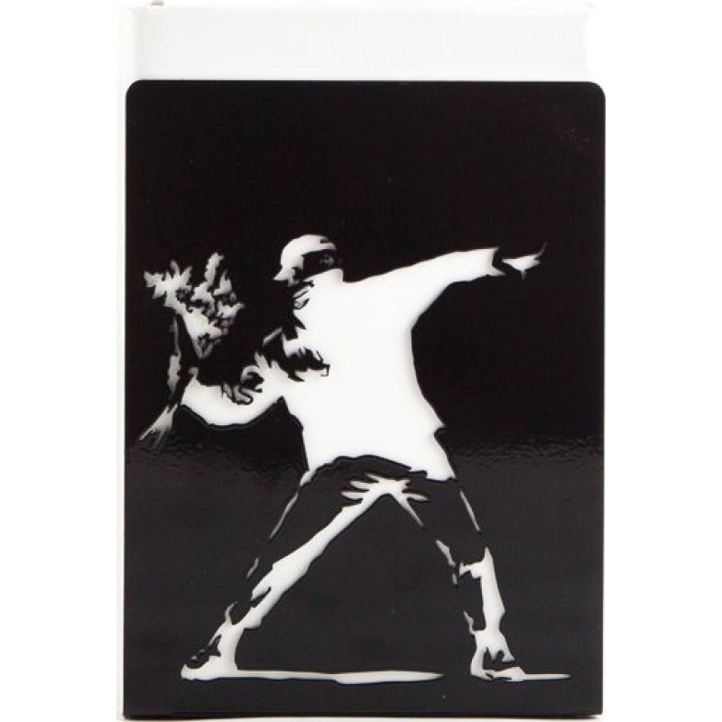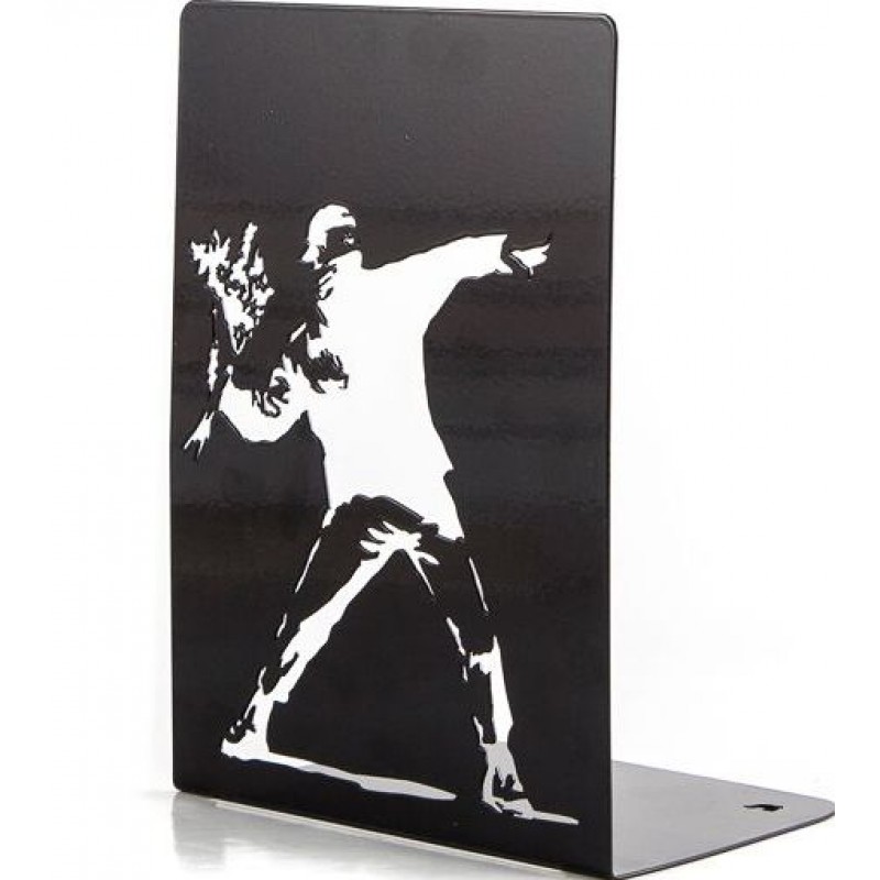 Бенкси вдохновляет многих на создание новых работ, мы не исключение. Знаменитая работа уличного художника с изображением человека, бросающего цветы, теперь стала держателем для книг.