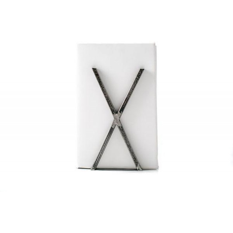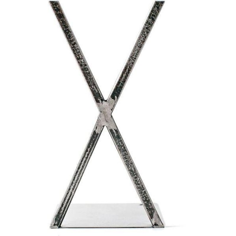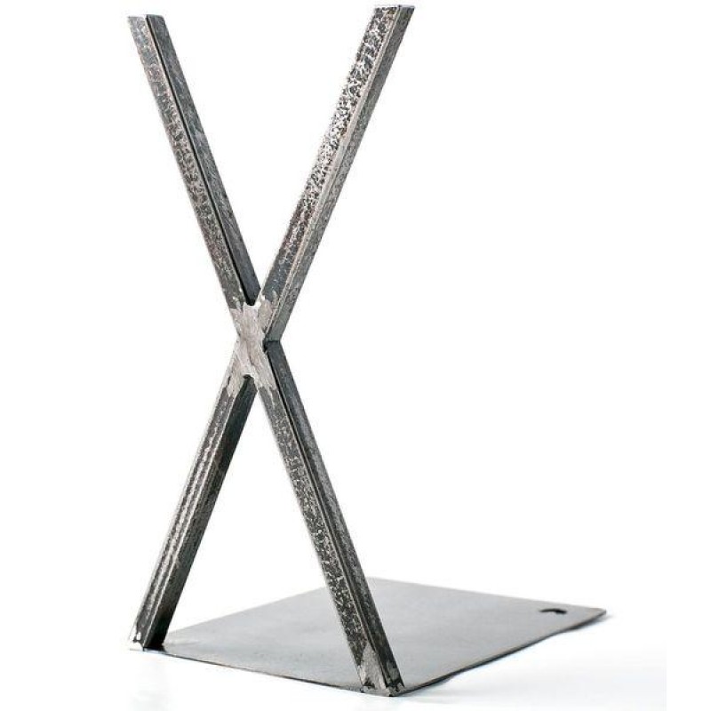 Держатель для книг Х сделан вручную из квадратного железного прута толщиной 8 мм. Форма X приварена к металлической основе, покрыта прозрачным лаком для защиты. Грубый металл и простая форма для поклонников индустриального минимализма.
