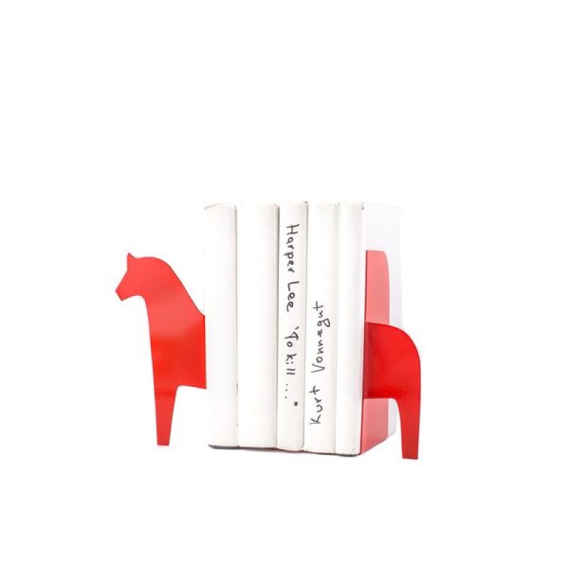 Металлические упоры в форме силуэта лошадки Дала. Прекрасный подарок для любителей животных и Швеции. Части держателей между собой не связаны и потому могут удерживать любое количество книжек.