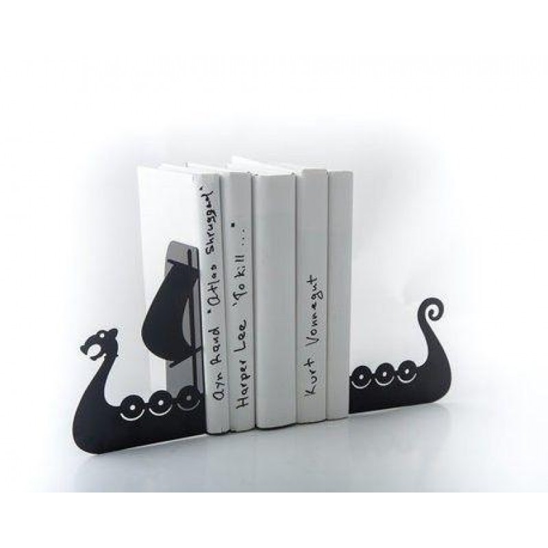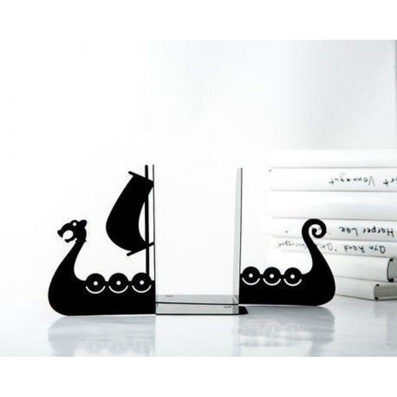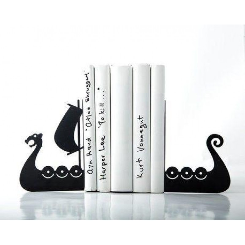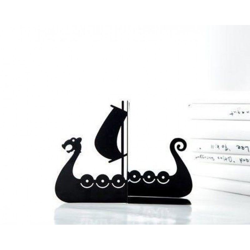Металлические упоры в виде силуэта корабля знаменитых нормандцев - Драккар - станут идеальным подарком для вашего мужчины. Части держателей между собой не связаны и потому могут удерживать любое количество книжек и сказок. Прекрасный подарок молодому человеку, брату, который будет служить функциональным стильным декором.