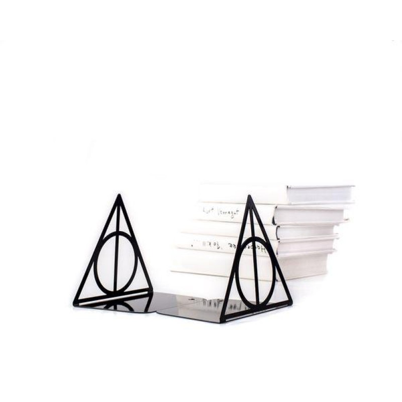 Волшебный подарок, который оценят все фанаты Гарри Поттера, Металлический упор для вашей коллекции книг по магии в форме треугольного знака Даров Смерти - символа самых сильных магических предметов из мира мальчика-который-выжил.