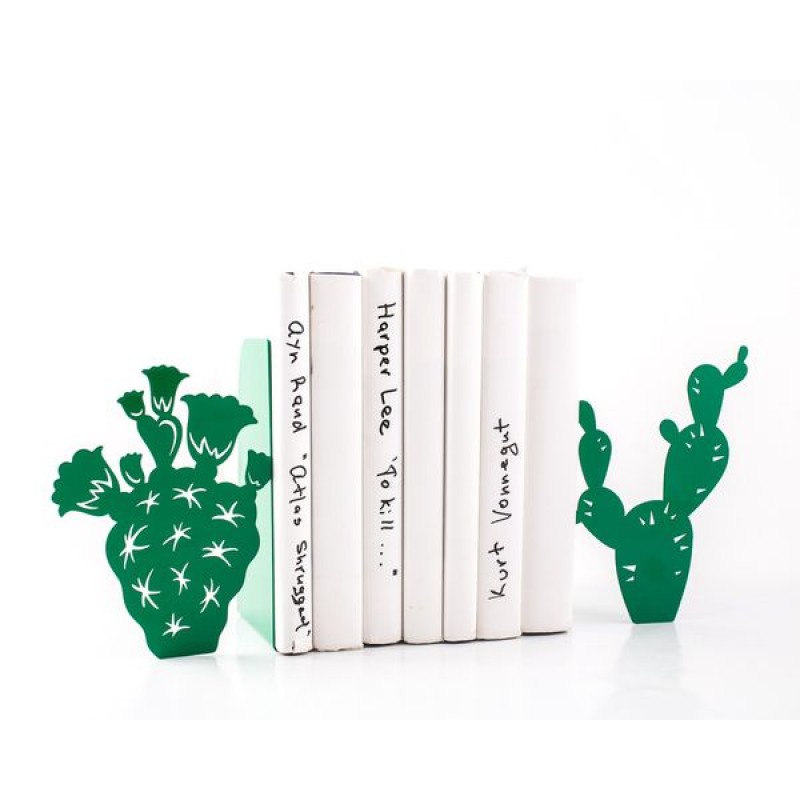 Кактусы в тренде. Металлические упоры Кактусы удержат любое количество книг на полке. а ещё добавят уюта и ощущения зелёного оазиса рядом с книгами. По отдельности вы также можете использовать их как подсвечники.