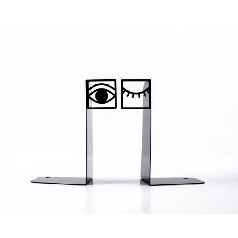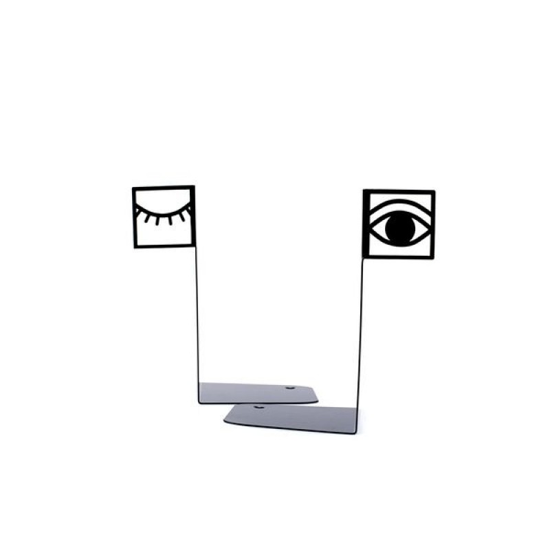 Металлические держатели для книг в виде пары подмигивающих глаз. Современный декор в дом, где одержимы дизайном и книгами.