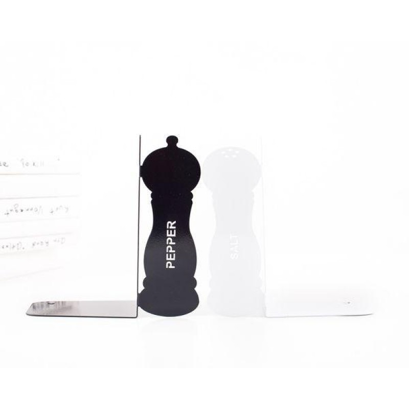 Металлические держатели для книг в форме солонки и перечницы созданы для того, чтобы удержать коллекцию ваших кулинарных книг и при этом добавить интерьеру шарма и элегантности. Чёрно-белые упоры идеально впишутся в комнату любого стиля. Хороший подарок для тех, кто не может жить без книг и кулинарии.