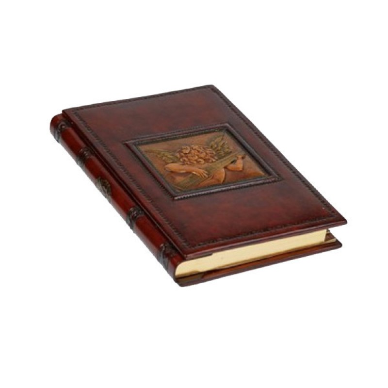 Адресная книга ручной работы, изготовлена из натуральной кожи. На обложке изображение ангела.