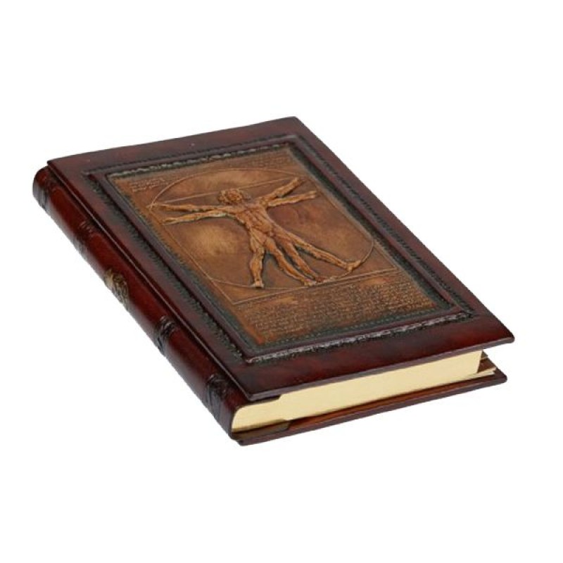 Дневник ручной работы, изготовлен из натуральной кожи. На обложке изображение Витрувианского человека(Леонардо да Винчи).