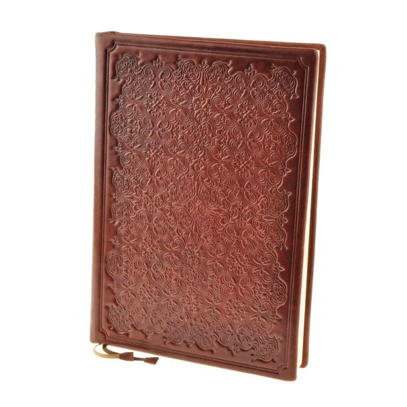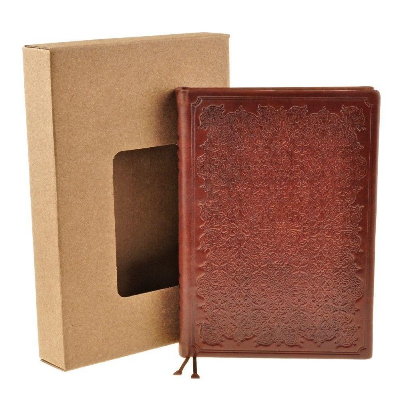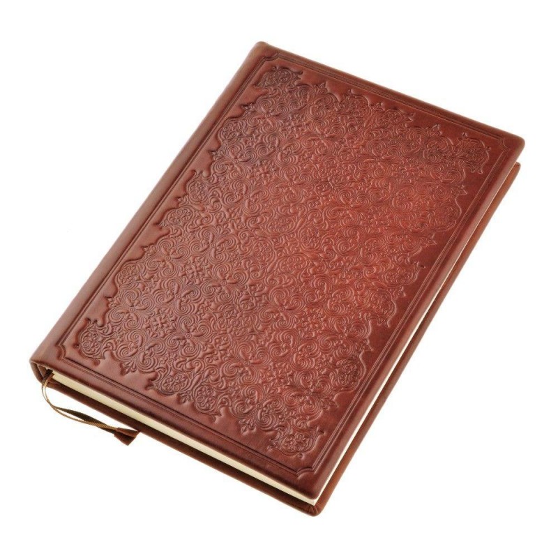 Твердый переплет из натуральной кожи, стилизованное под старину тиснение и естественные потертости - все это придают ежедневнику античности. Оформление напоминает средневековый фолиант, найденный на полке старинной библиотеки.