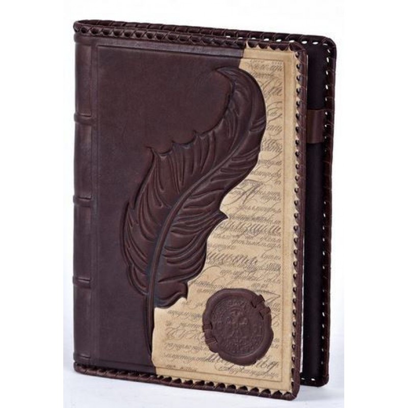 Ежедневник формата А5 из серии "Перо" из натуральной кожи, не датирован в линейку с мелованными листами
