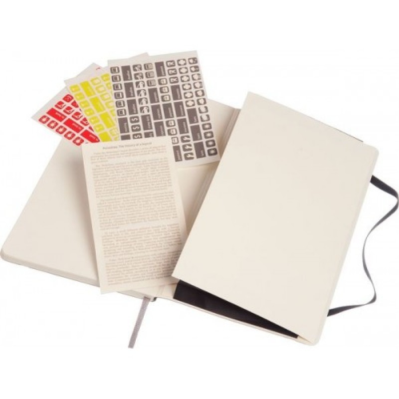 В блокноте неделя на странице и рядом страница для заметок; набор наклеек в кармане еженедельника.