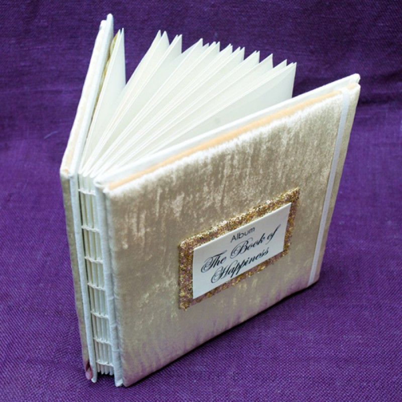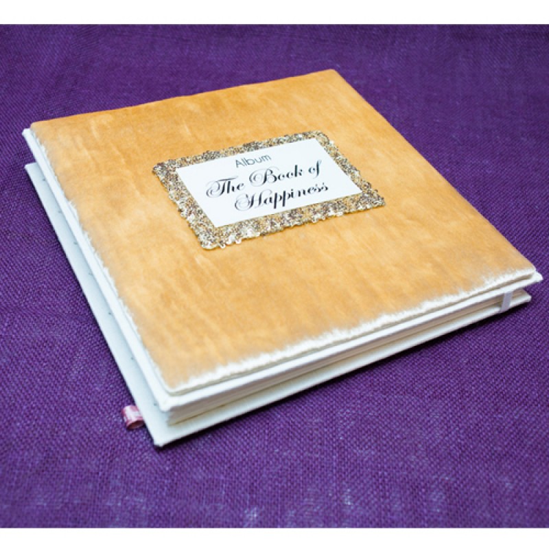 Книга счастья — это место, для хранения лучших мгновений Вашей жизни. Здесь Вы можете хранить любимые фото, записи, пожелания, письма, билеты. Обложка альбома — бархатный шелк. Декор — пайетки. Страницы — плотный картон (производства Голландии) и калька. Декор — бумага ручной работы. Это презентабельный подарок себе или самым близким. Упакован в плотную подарочную коробку.