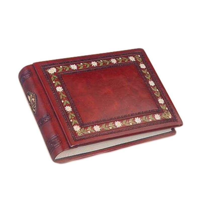 Альбом ручной работы, изготовлен из натуральной кожи(бордо). Обложку украшает кайма в виде цветов.